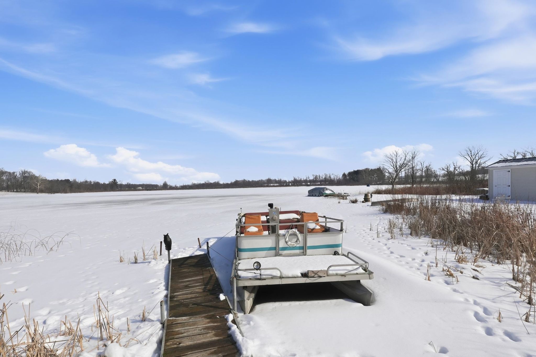Welcome to Northeast Indiana’s Lake Country! This charming lakefront home offers 80 feet of frontage on Eve Lake, a private and peaceful lake neighboring Adams Lake. Enjoy stunning water views and quiet surroundings in this serene setting. The home features 2 bedrooms and 1 full bath, with potential to add a 3rd bedroom to suit your needs. It’s ready for its next owner to make it their own. A 24’ x 30’ heated detached garage provides excellent space for vehicles, lake toys, or a workshop. Whether you're looking for a weekend retreat or year-round living, this property offers the perfect opportunity to enjoy lake life — and no flood insurance is required. Pier and pontoon included in sale!