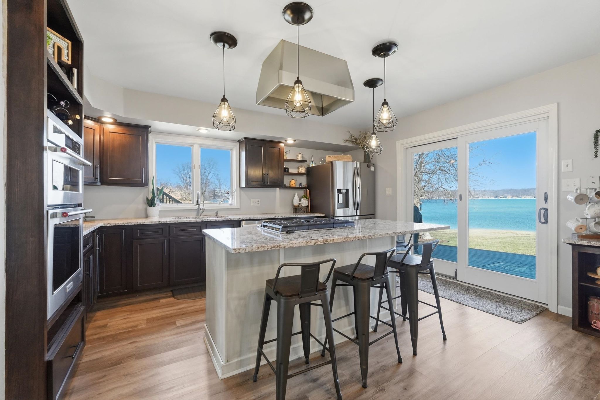 Enjoy lake life on Big Turkey Lake, a 450-acre all-sports ski lake in Northeast Indiana’s premier lake country! With 100 feet of water frontage, this property offers the perfect setting for swimming, skiing, boating, and soaking in stunning sunset views. This spacious home features 5 bedrooms and 2.5 bathrooms, offering plenty of room for family and guests. The updated kitchen is beautifully appointed with granite countertops and flows seamlessly into the generous living area—ideal for gathering after a full day on the water. Wake up to peaceful lake views from three of the five bedrooms, bringing the beauty of the outdoors right inside. Step outside to a level lakefront lot, perfect for entertaining and lakeside activities. Multiple outdoor living spaces—including a screened-in porch—provide plenty of room to relax, dine, and host summer get-togethers. Additional features include a heated, 3-car detached garage for all your lake toys and storage needs. A backlot with pond access is also included in the sale, offering extra space and added value.